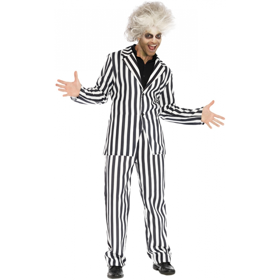BEETLE BOSS ADULT LARGE. Striped jacket and matching pants. Shoes and wig not included. Fits mens large sizes 42-44.