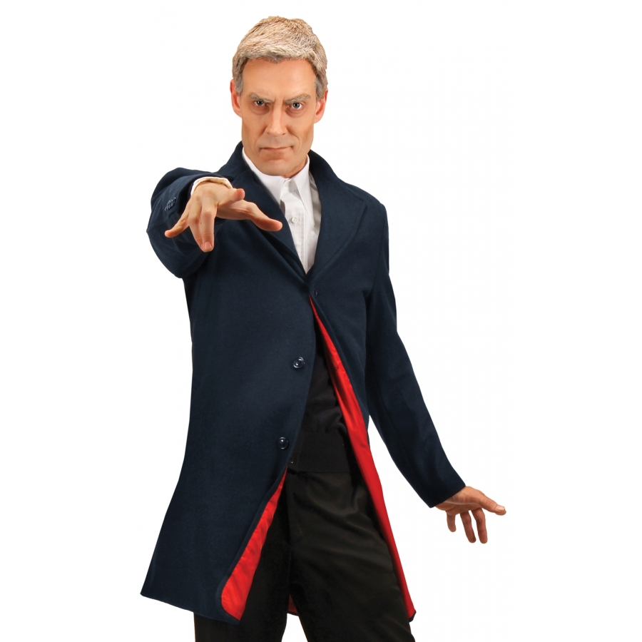 DOCTOR WHO 12TH DOCTOR SM/MD. Look just like the main character in your favorite science fiction series, the BBC-produced Dr.Who! Black men’s jacket with red lining. Fits adult small/medium sizes 36-42.
