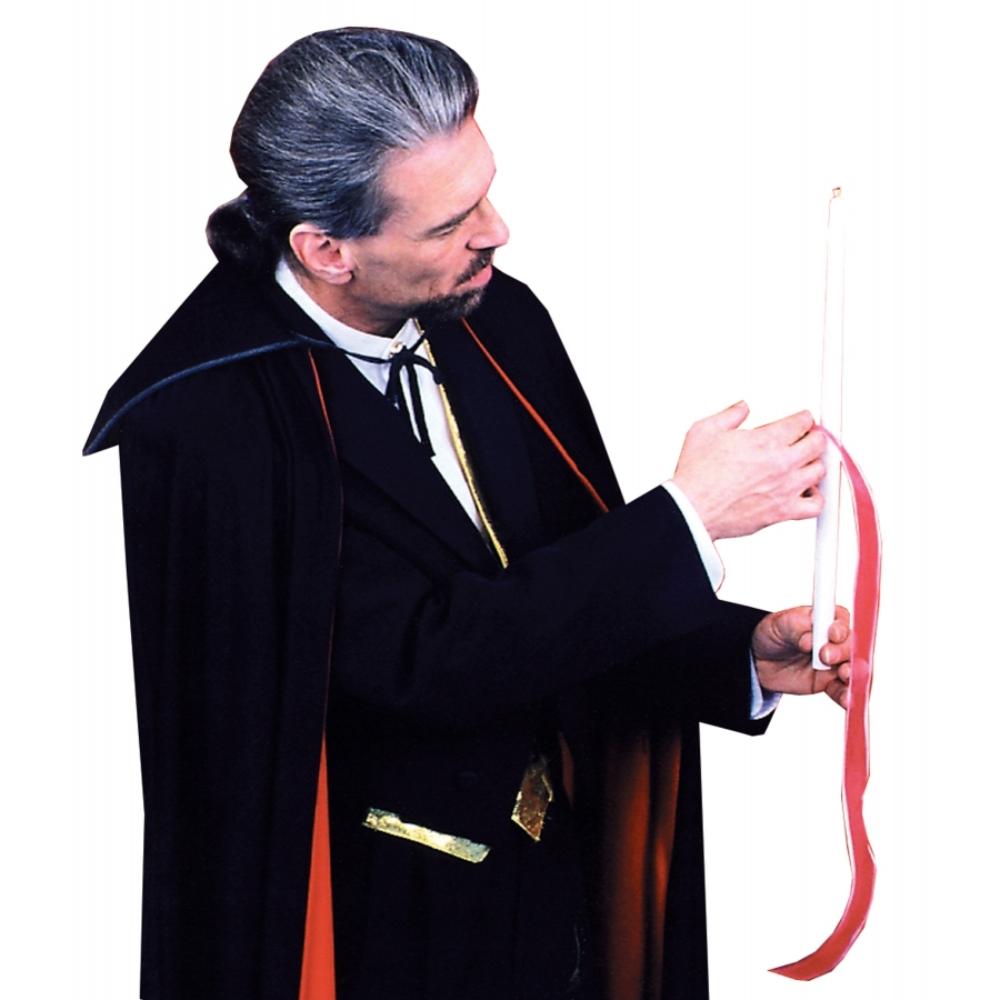 RIBBON AND CANDLE RED. From empty hand, a full size burning candle simply appears! The candle appears in your hands lit. Complete with candle and full instructions.