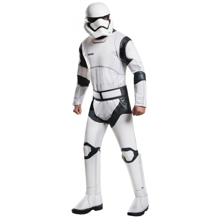 STORMTROOPER DLX ADULT STD. One of the best costumes around for the dedicated (and sometimes obsessed) Star Wars fan or someone who needs a great costume for a sci-fi event. Deluxe jumpsuit with foam armour detail, 2-piece helmet and belt. White. Standard adult size fits up to size 40.
