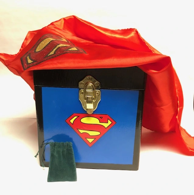 Destined to be a kid show hit! Perfomer shows a box and asks for a volunteer. The volunteer is going to be the super hero, but his only weakness is kryptonite. The performer attaches the red super hero cape to the assistant. A beautiful box is shown. The super hero has no problem lifting the box. Performer introduces the kryptonite and place it inside the box. The super hero finds the box impossible to lift, no matter how hard he/she tries.
